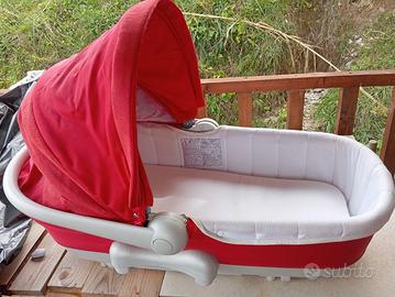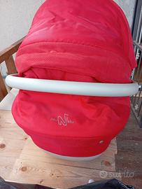 trio neonato completo di seggiolino auto con accessorio aggancio sedili, passeggino e culletta con piedistallo per casa... solo ritiro