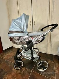 Borsa bebè che può essere portata a tracolla o agganciata al telaio.
