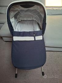 Il set comprende anche 2 kit differenti per utilizzare la navicella in auto e l'ombrellino, originale e dello stesso colore, oltre ad un secondo materasso antisoffoco da utilizzare con il kit auto.