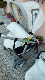 Sistema modulare 0m+ composto da carrozzina - passeggino - seggiolino auto Caratteristiche Sempre più versatile e vicino alle esigenze delle mamme di oggi, il passeggino trio OVO Premium si fa letteralmente in quattro per aiutarle nella vita di tutti i giorni, perché è passeggino fronte-mamma e fronte-strada, navicella e seggiolino auto. L’eleganza delle linee si unisce alla praticità della chiusura a libro semplificata e della funzione memory, che facilita lo sgancio della navicella e del seggiolino auto. Caratteristiche della Navicella Pratica e maneggevole,la navicellaauto con scocca rigida per passeggino Ovo Premium è ampia per accogliere il bambino sino a 6 mesi (73×33 cm le dimensioni interne). ECE R44/04 – Gruppo 0, 0-10 kg (dalla nascita fino a 6 mesi circa) Peso navicella : 6 kg Caratteristiche del passeggino l design delpasseggino Ovo Premiumè contemporaneo e accattivante e la maneggevolezza è straordinaria, grazie ai cuscinetti a sfera sulle ruote anteriori che agevolano la scorrevolezza. Omologazioni: Passeggino: EN 1888 (6 -36 mesi) Caratteristiche del seggiolino auto Il seggiolino auto con seduta a imbottiture differenziate Smart Silverlineè il seggiolino auto ideale fin dalla nascita. Può essere installato con le cinture di sicurezza a tre punti o con la base auto Brevi. Già dotato di adattatori per passeggino Ovo Premium, è un seggiolino auto con una dotazione ricchissima. Omologazione: ECE R44/04 – Gruppo 0+, 0-13 kg (dalla nascita fino a 12 mesi circa) .Peso seggiolino: 3,5 Kg