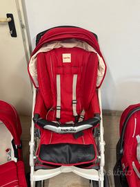Trio Inglesina otutto rosso, sfoderabile. Completo di ruote, parapioggia, coprigambe, base per auto. Carrozzina omologata per auto,