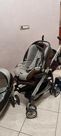 Trio Peg Perego colore marrone e grigio, composto da passeggino con schienale e gambe reclinabile, su cui può essere applicato ovetto fronte e retro accessoriato con base per aggancio rapido in macchina, e carrozzino con schienale alzabile sempre con posizione fronte e retro. Completo di tutte le copertine, borsa coordinata, cappottina impermeabile trivalente. Ritiro in zona o accordandoci per spedizione.