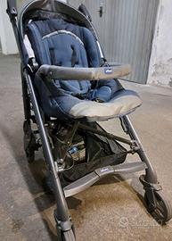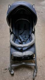 Passeggino con schienale reclinabile, seduta ampia e imbottita, leggero e maneggevole, si chiude con una sola mano; la seduta è reversibile in un semplice gesto.