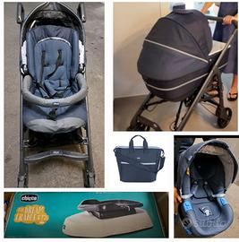 Passeggino, navicella XL, seggiolino auto e pedana oscillante. In omaggio borsa, coprigambe, parapioggia e retina antizanzare.
