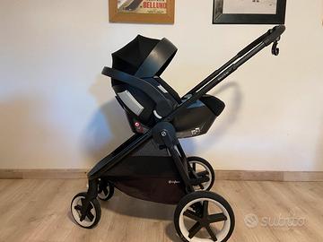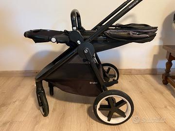 Passeggino Cybex Balios M. Molto spazioso, sta comodo un bambino fino ai 3 anni d’età. Allo stesso tempo maneggevole e relativamente leggero. Trio completo di ovetto (Cybex Aton 5) votato ad alti livelli ai test di sicurezza e navicella. Il passeggino si puó girare anche fronte mamma. Presenta leggeri segni sulla struttura, ma non particolarmente visibili nel complesso.