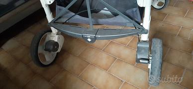 Trio completo di ovetto, passeggino e navicella, base isofix e telo parapioggia, marca inglesina, modello Trilogy City. colore bianco e tortora scuro. ha qualche striscio sul telaio e le ruote un po' consumate, ma è in perfette condizioni. se qualcuno desidera altre foto, basta chiedere nei messaggi e le mando