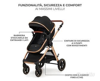 Kinderkraft ESME Trio passeggino neonati 3 in 1 fino 26 kg, con Ovetto I-SIZE 40-75 cm, Carrozzina reversibile fronte mamma e strada, Pieghevole, Nero