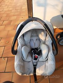 vendo trio bebè comfort completo di passeggino carrozzina e ovetto con tutti gli accessori. Tenuto bene, lavato tutte le parti asportabili. Vedi foto per colore e condizioni.