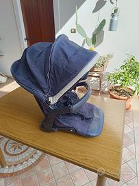 Dotato di maniglione ergonomico e regolabile, ruote soft ride con molleggi e cuscinetti a sfera, capiente cestello inferiore e ampia capottina.
