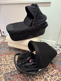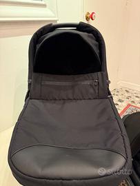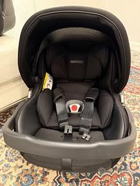Trio Peg Perego composto da Ovetto auto, Navicella Carrozzina completa di materasso e cuscino anti soffoco, Passeggino con copertura e portaoggetti tutto in tessuto colore nero completamente sfoderatile e lavabile borsa bimbo Peg Perego nera
