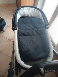 Trio completo di navicella ovetto (ideale per il viaggio in macchina)e passeggino color blu navy più coperture (2) per navicella e passeggino in caso di stagione fredda. Il passeggino può essere utilizzato sia fronte mamma che girato. Ruote con ammortizzatori.