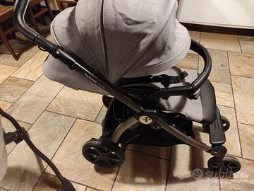 Culla (completamente sfoderabile) con supporto pieghevole, lenzuola e copri materasso impermeabile, ovetto con fodera protettiva, borsa abbinata. Le ruote del passeggino (che vanno bene anche per la culla e per l'ovetto) possono essere bloccate o libere, freno a pedale, copri gambe del passeggino, fronte strada o contromarcia, si può sdraiare completamente (va bene da subito fino 22kg) , passa tranquillamente nella più parte degli ascensori (è largo solo 51cm), si chiude a libro ed è facile aprirlo. Completo di istruzioni. Usato poco, tenuto bene presenta qualche segno ma irrilevante.