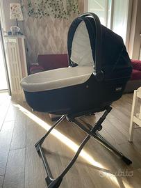 Seduta passeggino fronte mamma/mondo; seduta ovetto con 2 basi auto(una isofix e una con cintura di sicurezza); navicella neonato con base stand up da tenere fissa in casa, al posto della struttura con ruote.