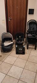 Trio Peg Pérego Book51, completo di: struttura pieghevole, navicella, passeggino, ovetto, borsa originale e base isofix per auto.
