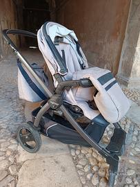 Vendesi trio PEG Perego book 51,colore écru e inserti in pelle blu. Carrello con leggeri segni di usura. Passeggino 0 - 6 mesi con coprigambe, in perfette condizioni. Culla in ottime condizioni usata pochissimo compreso supporto per tenerla in casa. Seggiolino auto reclinabile compreso di base i-size conforme alle normative vigenti. Compresa borsa.