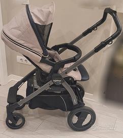 Trio Peg Perego modello Book 51 S Élite, completo di stand up per navicella, borsa, passeggino e ovetto. Manico del telaio in pelle, dettagli sulla navicella in pelle blu scuro, cerniere dorate, tenuto molto bene, no segni di usura. Navicella dotata di materassino. Ulteriori foto disponibili