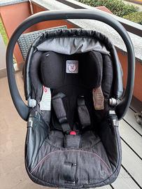 Trio Peg Perego modello Book 51 in tessuto effetto denim con profili e manubrio passeggino in ecopelle, con base isofix e borsa cambio coordinata, in perfette condizioni, lavato e conservato tutto nelle scatole originali. Ritiro a Paderno Dugnano