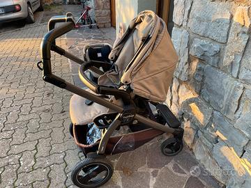 Trio peg perego del 2018, completo di carrozzina, base da camera, navicella, ovetto e passeggino. Incluso base isofix per auto.