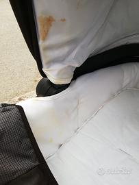 ATTENZIONE: COME DA FOTO ALLEGATE SUL RIVESTIMENTO INTERNO (SFODERABILE E LAVABILE) DELLA NAVETTA E SULLA SUA CAPPOTTINA CI SONO DELLE MACCHIE DI CAFFE'. Composizione del sistema modulare: carrello con chiusura a libro, ruote con molleggio e12 cuscinetti a sfera, manico unito. seduta passeggino reversibile completa di copertina, parapioggia e capottina. navetta XL con copertina. seggiolino auto 0-13 Kg Primo Viaggio SL. Borsa coordinata. Navetta XL Omologata auto Gruppo 0 ( fino a 10 kg) consigliata per i lunghi viaggi, il neonato potrà viaggiare comodamente sdraiato con la massima sicurezza; si fissa saldamente al sedile grazie al nuovo Kit con cinturini a 3 punti, dotati di spallacci e agganci per il trasporto in auto,(acquistabile separatamente). E' dotata di "Comfort System", schienale e poggiagambe regolabili dall'esterno simultaneamente. Si completa di capottina panorama con finestra di areazione. Peso e misure Navetta XL Peso: 5,3 kg Dimensioni esterne: 45,5X67X87 (cm) Dimensioni interne: 70X32 (cm) Seggiolino auto Primo Viaggio SL E' omologato Gruppo 0+ da 0-13 Kg(da 0 a 1 anno). Passeggino BOOK Caratteristiche principali: seduta reversibile omologato dalla nascita schienale regolabile in più posizioni pedanetta poggiagambe regolabile in 2 posizioni maniglione unito, regolabile in altezza, la facilità di spingere con una mano sola frontalino apri-chiudi asportabile cinture di sicurezza a 5 punti ruote anteriori piroettanti o bloccabili, ruote posteriori con molleggio e freno centralizzato capiente cestello con sistema "carico facilitato" portabibite chiusura compatta a libro maniglia centralizzata per la chiusura e per spostare comodamente il passeggino su 2 ruote. Peso e misure Telaio Book Plus Peso: 7,4 kg Dimensioni aperto: 59 X106 X93 (cm) Dimensioni chiuso: 32 X 85 (cm)