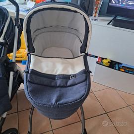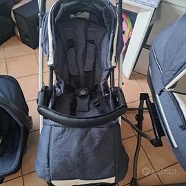 Vendo Trio Peg Perego Book S in colorazione elegante (blu melange/jeans con dettagli bianchi e in ecopelle), completo di tutti gli accessori originali come mostrato in foto.