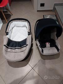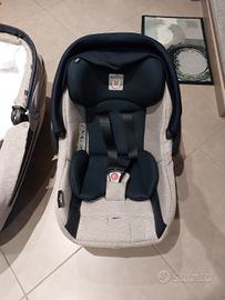 venso Trio Peg-Pérego composto da navicella (con supporto culla), ovetto (con riduttore) e passeggino (con copertura passeggino). Con borsa passeggino (con telo per il cambio) coordinata e vello agnello.