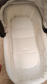 Trio peg perego four modular composto da navetta XL con materassino aggiuntivo, ovetto primo viaggio con seduta reversibile, passeggino pliko swich con seduta reversibile e schienale regolabile. Sistema di aggancio automatico, porta biberon, sacco copri bimbo, borsa.