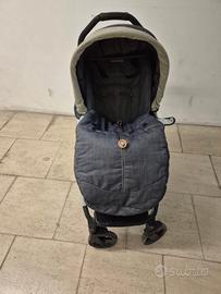 Vendo trio Peg Perego usato ma tenuto bene. Composto da sacca con coprisacca, ovetto, passeggino con coprigambe e borsa. Tessuto jeans unisex.