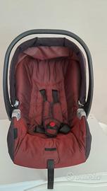 Carrozzina, ovetto e passeggino colore bordeaux-nero. Borsa coordinata inclusa. Base macchina inclusa.