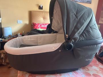 Trio unico telaio, praticamente nuovo color verde navy, composto da navicella con possibilita di rialzo interno, passeggino con capottina a chiusura a 180* - e ovetto da auto 0/12 mesi che utilizza stesso telaio da passeggio. Carrozzina completa di materassino e copertura in tessuto piu copertura pioggia e borsa porta oggetti da aggangiare al telaio. Passeggino corredato di coprigambe invernale. Tutto tenuto molto molto bene.