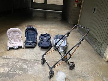 Vendo usato pochissimo trio Peg Perego, carrozzina e seggiolino piu seggiolino per auto.