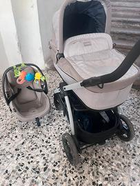Vendo trio peg perego completo di tutto anche di passeggino non presente però in foto ! Funzionante e maneggevole con ruote grandi , si chiude facilmente ! Regalo copertina materassino e due lenzuolini con angpli per navicella in piu parapioggia ovetto giochino ovetto vedi foto ritiro a Macherio