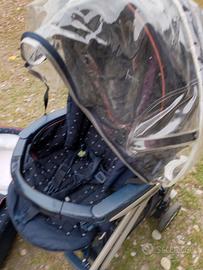trio nascita peg perego, buono stato, completo di culla, passeggino e seggiolino auto, adatto per bambini appena nati, in dotazione c'è anche l'antipioggia.