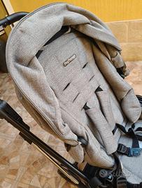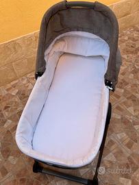 Trio Peg Perego con inserti in pelle ultimo modello usato per 6 mesi quindi è come nuovo . Dotato di staffa per usare la navicella come culla . È presente anche l ovetto