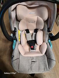 Ovetto con modalità "comfort recline"per la nanna in auto e fuori con cappottina UPF 50+ completamente richiudibile, fronte mamma e strada, dotato di base auto isofix girevole.