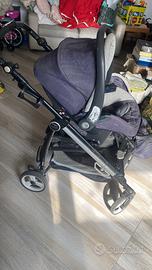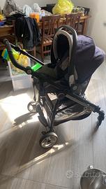 Trio Pliko Switch,tessuto in denim. Accessoriato con telo para pioggia,porta biberon/borraccia,materassino e cuscino anti soffoco. Chiusura ad ombrello e maniglione regolabile in altezza. Passeggino e ovetto regolabili fronte mamma o vista mondo. Il tessuto é perfetto ed anche la struttura è in ottime condizioni. Solo l’ovetto presenta l’etichetta di carta sul maniglione un po’ sbiadita.