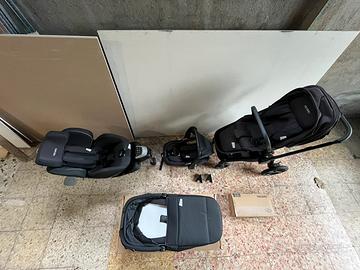 - Seggiolino con base integrata Isofix Selia Elite Recaro (tessuto plus) completo di riduzioni (dalla nascita fino a 105 cm) e attacchi per il passeggino,