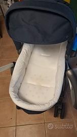 Culla completa di cappottina parasole regolabile, maniglione regolabile, copertura culla removibile, kit fissaggio per trasporto in auto, materassino aggiuntivo traspirante e antisoffocamento.