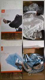 Stokke® Xplory® è il passeggino a 4 ruote dal design scandinavo. È pensato per tutte le fasi di crescita del bambino, dalla nascita fino ai 22 Kg di peso.La caratteristica principale di Stokke® Xplory® è quella di consentire il posizionamento del bambino più in alto rispetto allo standard, favorendo dunque il contatto con il genitore. Grazie al maniglione unito regolabile sia in altezza sia in angolazione e alle ruote piroettanti, garantisce massima manovrabilità. Può inoltre essere configurato in modalità due ruote per spingerlo facilmente su terreni sterrati. Grande borsa removibile con manico per il trasporto che funge da cestello portaoggetti sul passeggino. Completamente sfoderabile e lavabile. Ruote anti-foratura. Sono compresi, kit inverno di colore Bianco, kit estate di colore azzurro-bianco. Ovetto (non Isofix) reclinabile Be safe stokke, che si attacca sui ganci del passeggino. Sacco Inverno del passeggino. Questo modello è quello del 2015, il telaio è di colore marrone grigio, presenta piccoli graffi di usara. Tutto conservato negli scatoli originali tenuti in solaio privo di umidità. No perditempo no vendita singola dei prodotti