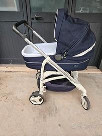 È composta da telaio, navicella, ovetto e passeggino (ultimo step del bimbo). in abbinamento c'è anche la base per agganciare l'ovetto in auto, copertura impermeabile per la pioggia..