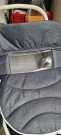 dotato di borsa,zanzariera,parapioggia. culla con scocca rivestita. maniglione in pelle