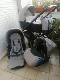 Vendo trio Venicci :culla, passeggino e ovetto per auto tutto in ottime condizioni come da foto. Accessori copri ruote, zanzariera, materassino per la culla con copri materassino, cucino e borsa da appendere. Prezzo 400euro trattabili nuovo pagato 1000euro.×info 3457282479. dopo 17.