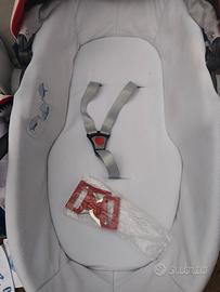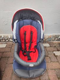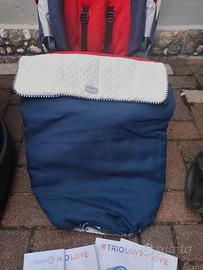 Triolove Chicco colore blu/rosso/panna completo di navicella con i ganci per il trasporto in auto, passeggino con coprigambe e ovetto con riduttore e base per auto.