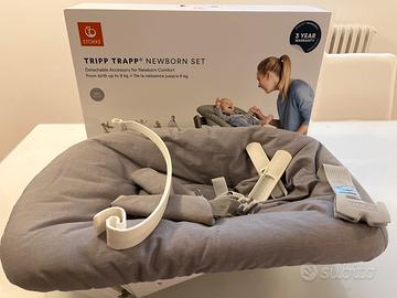 Tripp Trapp Newborn Set in condizioni perfetto completo di imballi originali e tutti gli accessori (piedini aggiuntivi e prolunga reggi gioco).