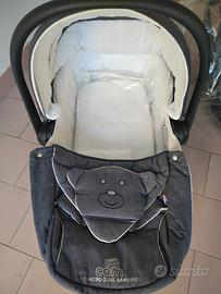 Vendo tris della Cam, color jeans, composto da navetta con materassino, cuscino e copertina, seggiolino auto per i primi mesi incluso parasole, passeggino fino ai 5 anni con parasole, antipioggia, spugna antisudore.