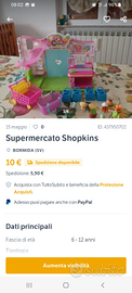 Tris Shopkins: playset Supermercato + playset Boutique + playset Forno. Il tutto completo di personaggi. Pari al nuovo. Vedere foto dei singoli annunci.