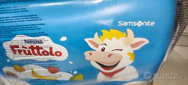 Trolley cavalcabile DREAM2GO per bambini brandizzato Frùttolo by Samsonite - Design a tema Fruttolo - Colore blu e bianco.