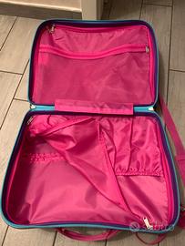 La struttura esterna del trolley è realizzata in resistente ABS, il che lo rende robusto e in grado di resistere all'usura durante i viaggi. Con dimensioni esterne di 40 x 32 x 20 cm, è il compagno di viaggio ideale per i più piccoli. È facile da trasportare grazie ai manici in tessuto e dispone di una tracolla regolabile e removibile per maggiore versatilità.