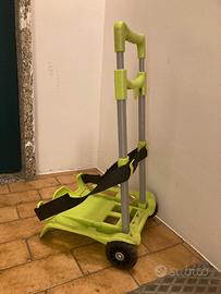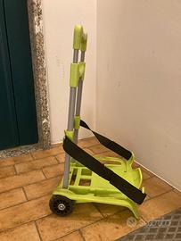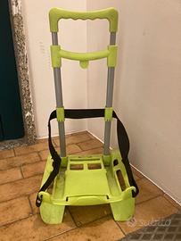 Vendo carrellino portazaino usato ma in ottime condizione. E' leggero, pratico, pieghevole e può portare zaini fino a 25Kg di peso.