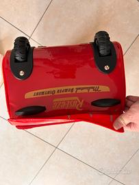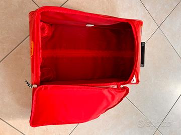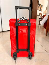 Vendo bellissimo trolley semirigido di Saetta McQueen, pezzo originale ed esclusivo del Disney Store. Perfetto per piccoli viaggi, weekend fuori porta o come borsa per l'asilo/scuola. • Design Iconico: Riproduce fedelmente la mitica auto numero 95 con finitura lucida effetto "carrozzeria". Ampio scomparto principale con doppia zip e tasca frontale (il muso dell'auto) per gli oggetti più piccoli. Maniglia estraibile robusta e ruote scorrevoli. Include anche una maniglia superiore in tessuto a scacchi. Ottime condizioni generali, mai stato usato, interno pulito e cerniere perfettamente funzionanti (come da foto). Dimensioni: 46x26 cm. Maniglia massima lunghezza 24 cm. #DisneyStore #Cars #SaettaMcQueen #LightningMcQueen #TrolleyBambino #ValigiaBambino #DisneyCollection #ViaggioBambini #ZainoTrolley