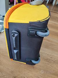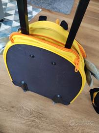 Trolley Ape, usato poche volte, qualche segno di usura sul fondo come da foto, per il presto tenuto molto bene, misure approssimative 44x32x15. Assieme anche lo zainetto piccolo, praticamente nuovo.
